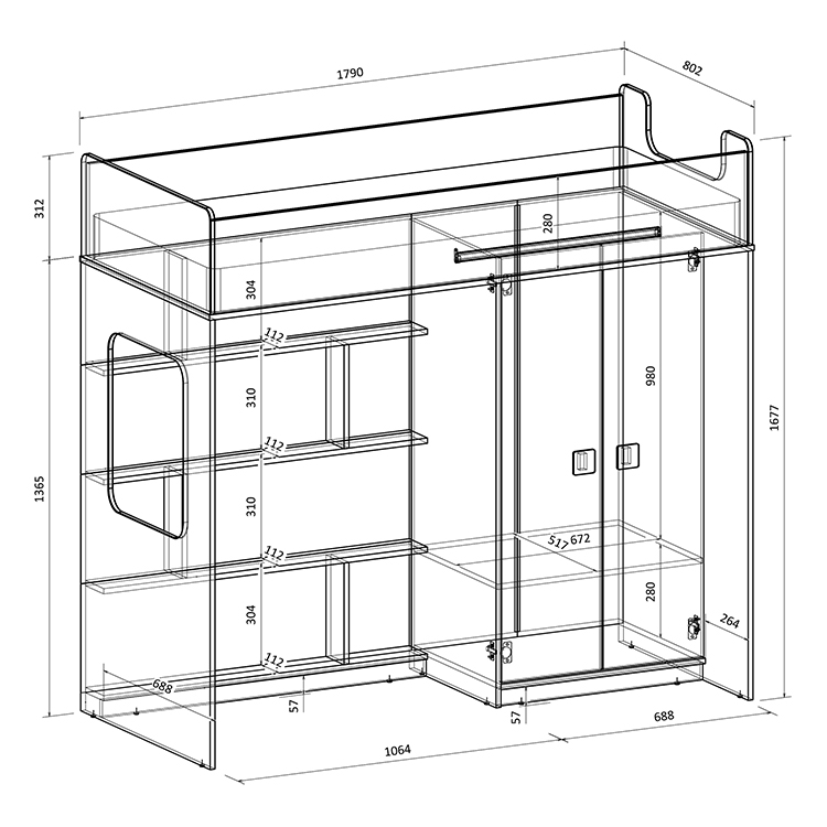 Высота кровати чердака всего 1677 мм.