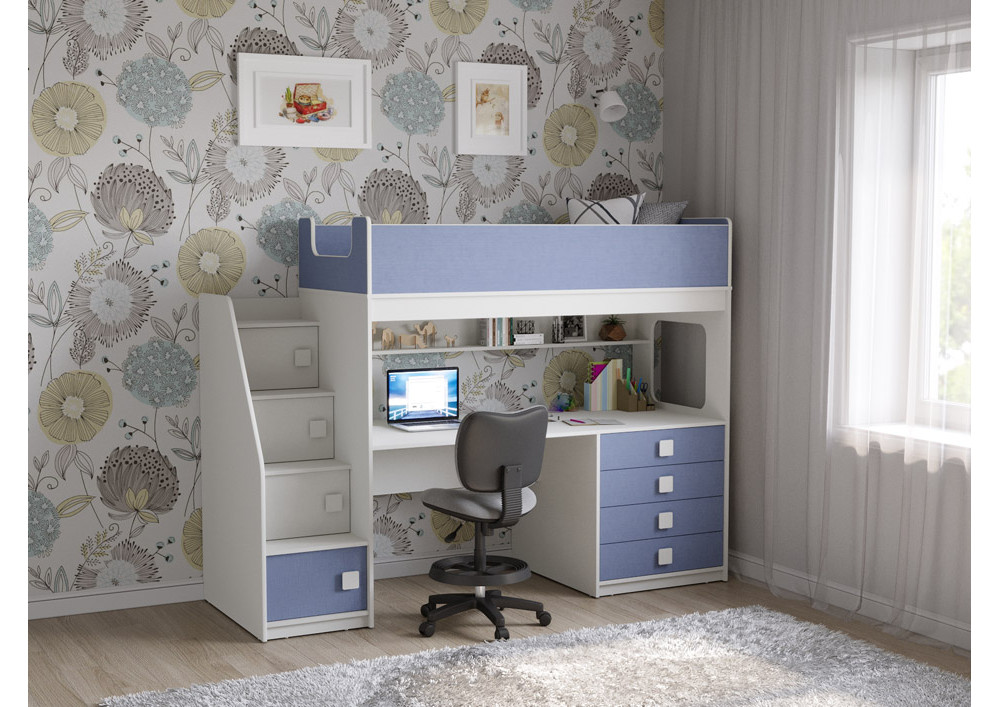 Учебная зона со столом под спальным местом открывает возможности для письменных работ,а также здесь удобно расположить ноутбук.