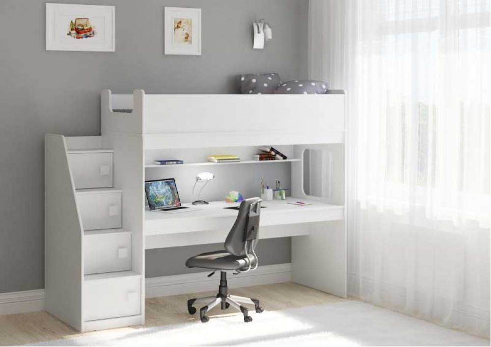 Учебная зона со столом под спальным местом открывает возможности для письменных работ,а также здесь удобно расположить ноутбук.