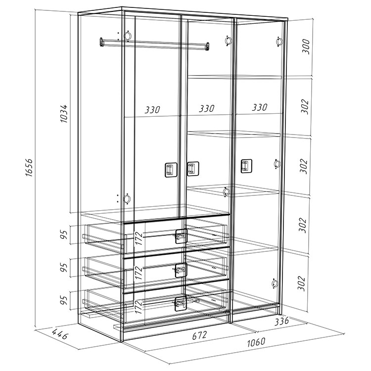 габариты (Д×Ш×В): 1060 × 446 × 1656