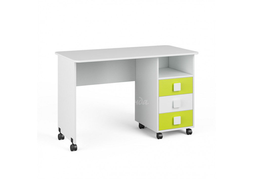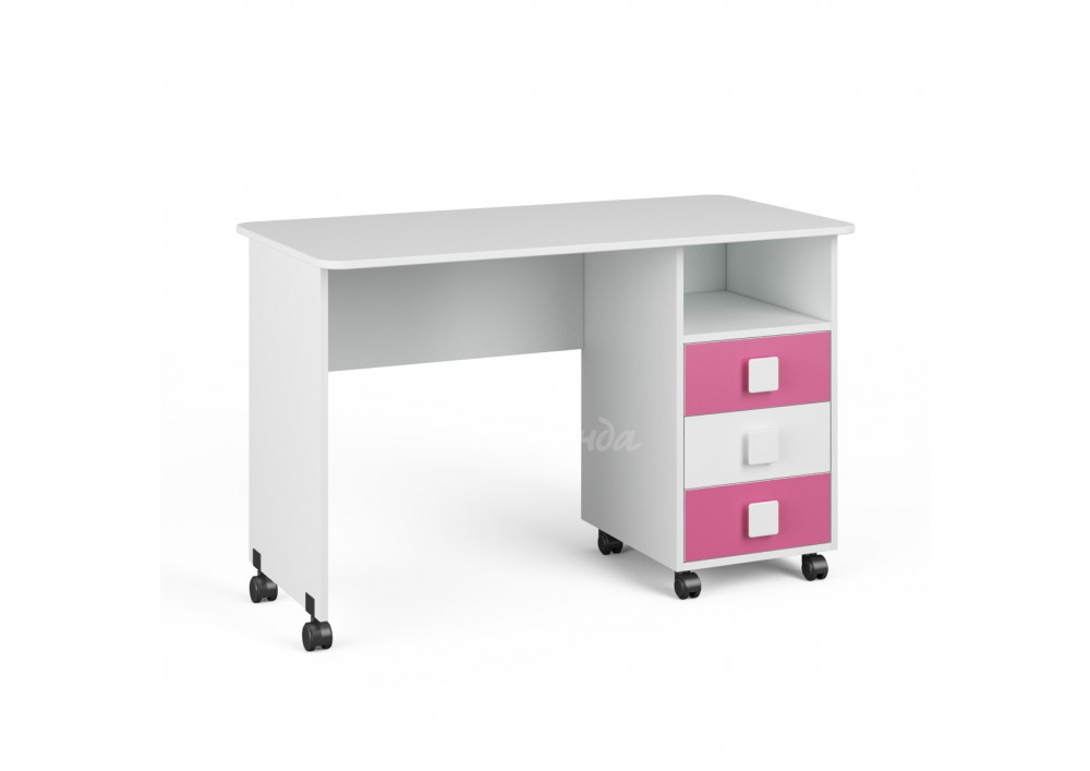 Три выкатных ящика стола обеспечат удобное хранение канцелярии,письменных,учебных и прочих принадлежностей.Над ящиками открытая полка для мелочей,которые будут всегда под рукой.