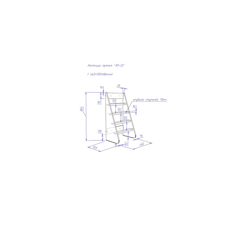 Специальная лестница ЛП-22,со ступенями из массива сосны обеспечивает устойчивость и надёжность.